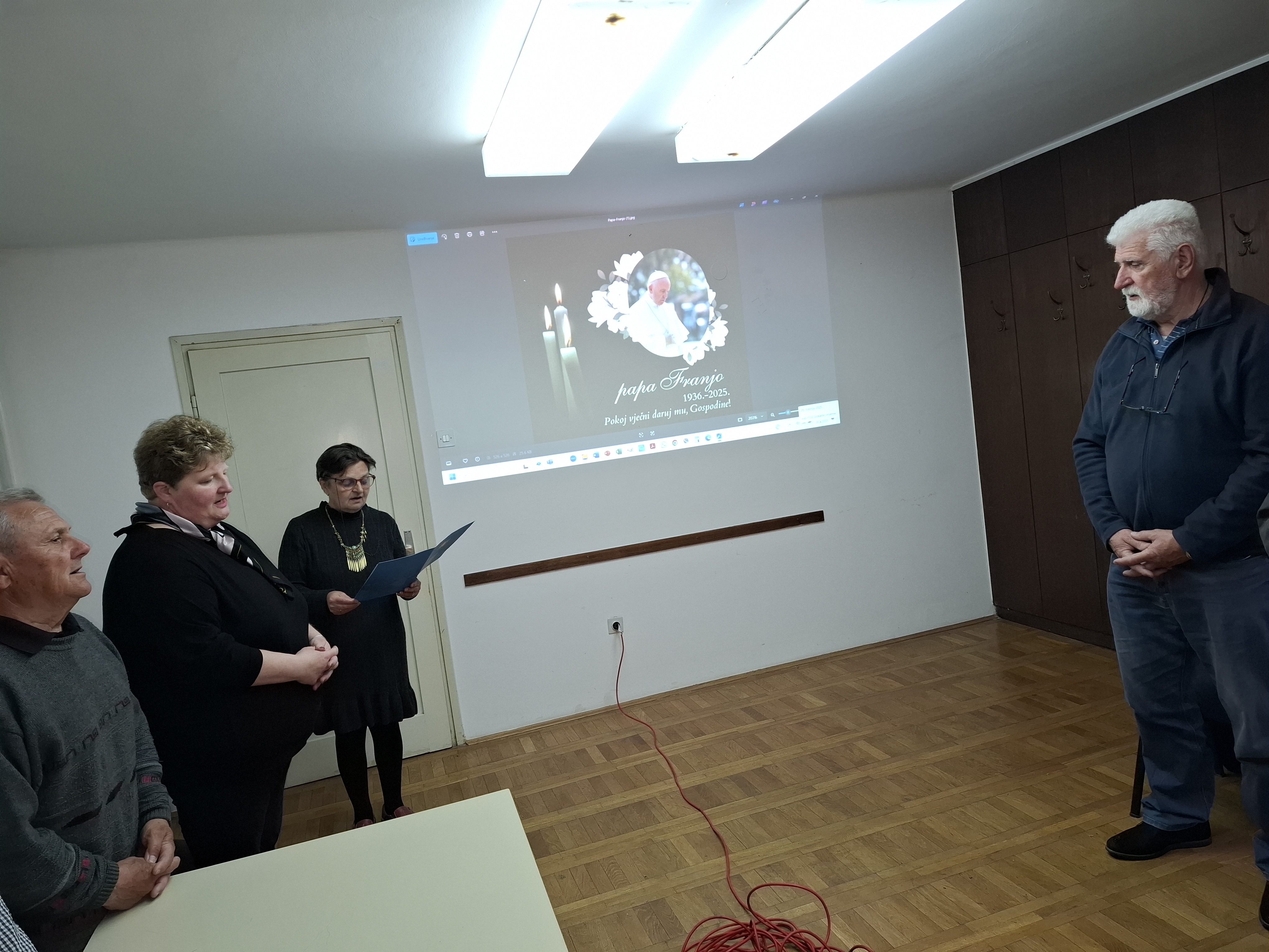 Nastavak programa je slijedio u zajedničkoj učionici u zgradi gdje Zajednica BRANITELI ZAJEDNO ima ured Satom povijesti. Na početku je zapaljeno svijetlo sjećanja i nade, te je izmoljena prigodna molitva za Papa Franju. Potom je voditelji Milka Tomašić pročitala rezime povijesnih događanja u Međimurju do današnjih dana.